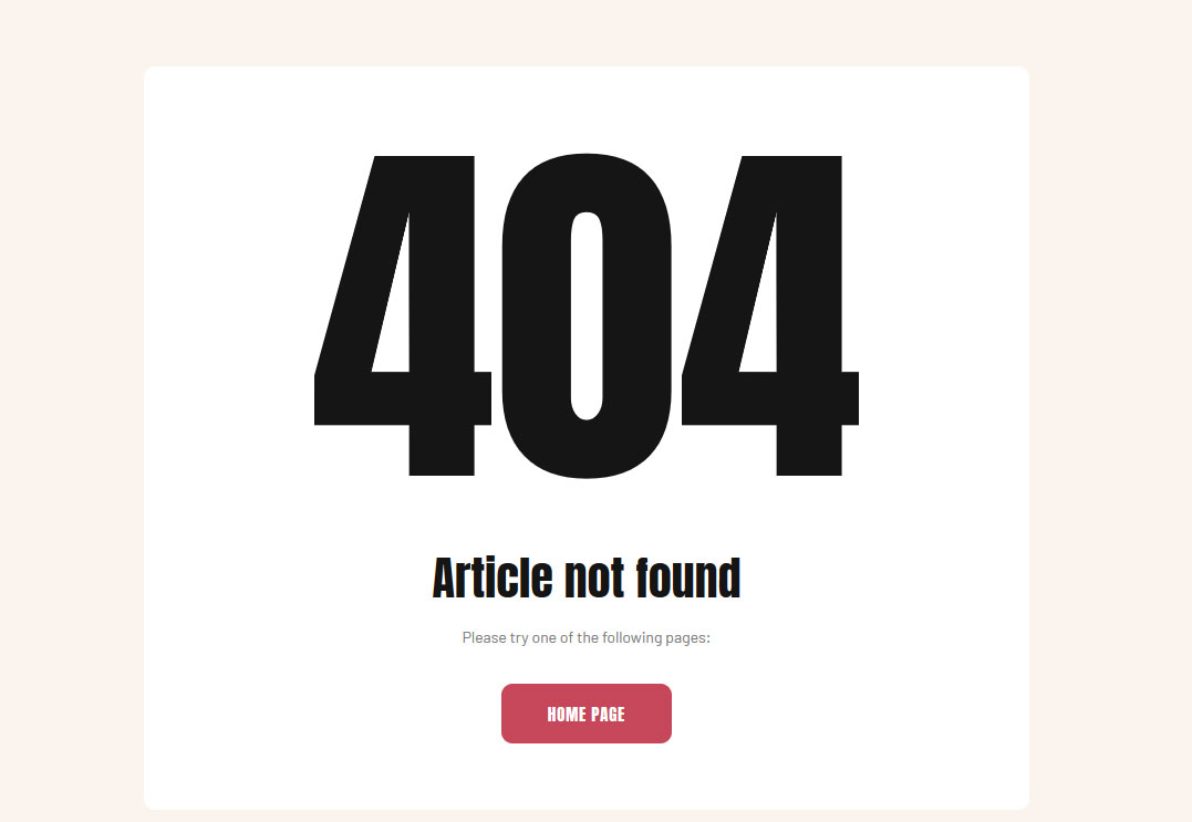 Each JA Joomla Template has its own matching 404 page. Below is the screenshot of 404 page style.
